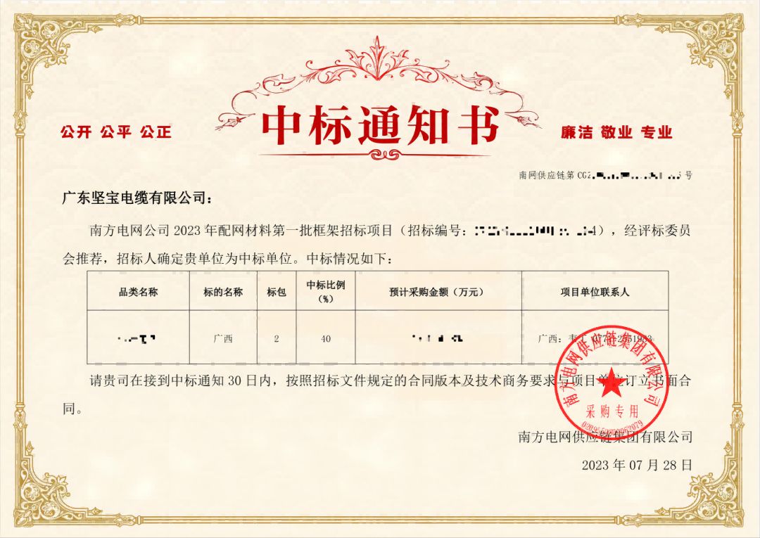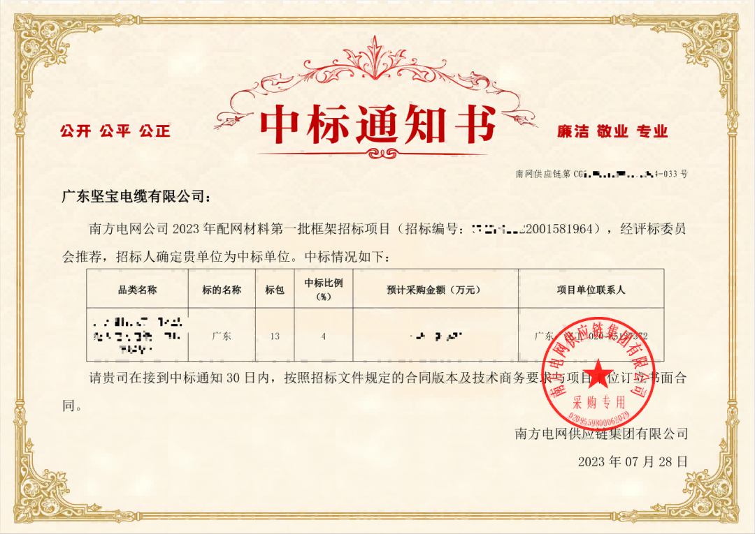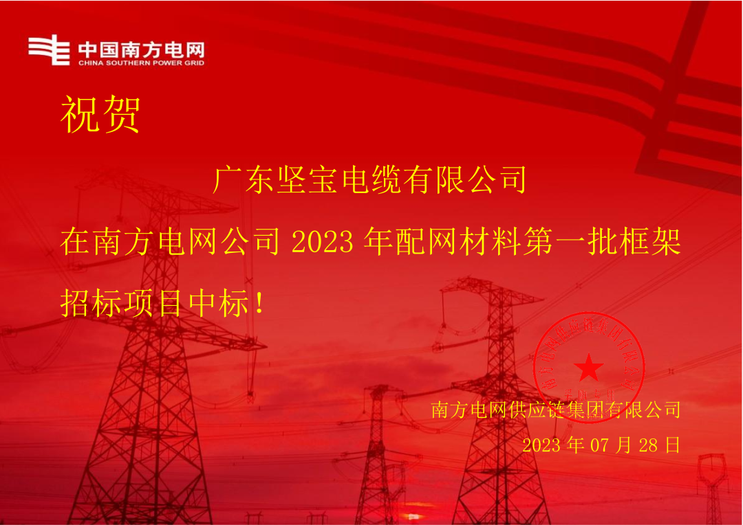 重磅喜报!快猫VIP破解版电缆中标南方电网公司 2023 年配网材料第一批框架招标项目!